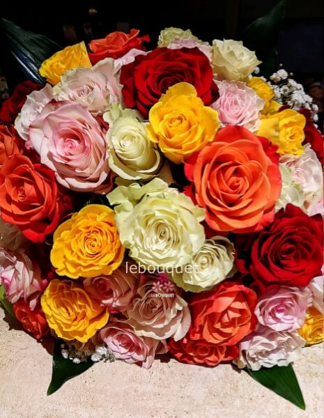 Sinfonia di rose è un mazzo importante di rose miste, composto da varietà di alta qualità in una ricca tavolozza di colori. Ogni petalo è stato selezionato con cura per offrire un’esperienza visiva e olfattiva intensa: dal rosso passionale al rosa delicato, dal giallo solare al bianco puro, passando per l’arancione vivace e il lilla romantico. Le diverse tonalità si intrecciano armoniosamente, creando un effetto scenografico che cattura lo sguardo e trasmette emozioni profonde.